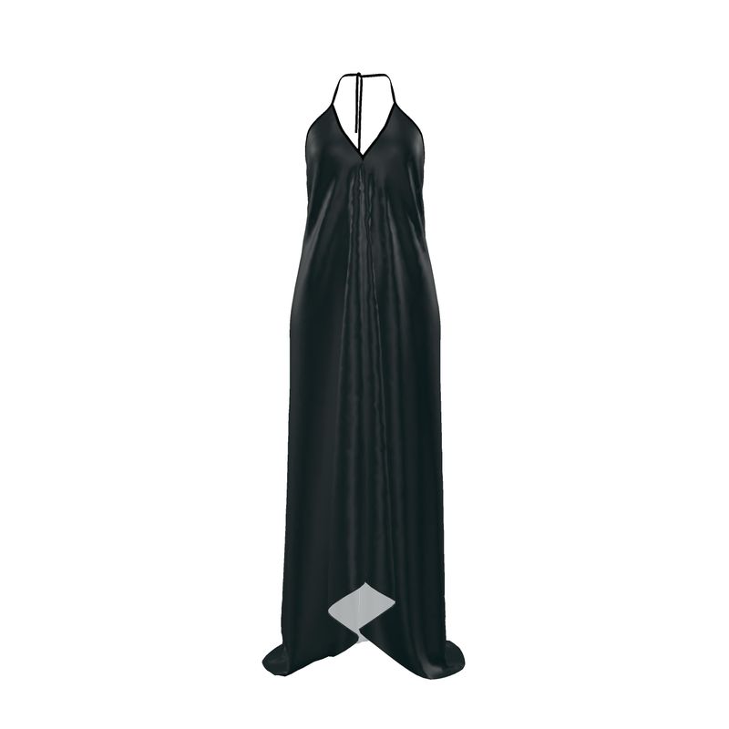 Abito lungo con scollo halter realizzato in 100% raso di seta, selezionato per la sua fluidità, luminosità naturale e sensazione setosa sulla pelle.Il tessuto accompagna il movimento del corpo con eleganza, creando un effetto fluido e continuo che valorizza la silhouette senza costringerla.Il design presenta una linea essenziale e verticale, con una costruzione studiata per garantire leggerezza, comfort e un’eleganza misurata.Lo scollo halter definisce il décolleté in modo pulito, mentre la schiena scoperta aggiunge un accento sensuale, mantenendo un equilibrio sofisticato e mai eccessivo.La parte inferiore del capo è rifinita con un taglio leggermente asimmetrico, pensato per amplificare il movimento del tessuto e dare profondità visiva all’abito.Il colore Midnight Blue, un blu profondo dalle sfumature notturne, esalta la resa del raso di seta e conferisce al capo un carattere elegante, contemporaneo e senza tempo.Ogni abito è realizzato a mano su ordinazione, secondo un processo produttivo attento che privilegia qualità dei materiali, precisione costruttiva e coerenza estetica.Un capo pensato per occasioni serali, eventi speciali e momenti in cui la semplicità diventa espressione di lusso autentico.📌 DETTAGLICapo: Abito lungo con scollo halterMateriale: 100% raso di setaColore: Midnight BlueVestibilità: FluidaScollo: HalterSchiena: ScopertaFondo: Taglio leggermente asimmetricoProduzione: Fatta a mano su ordinazioneQualità: Premium